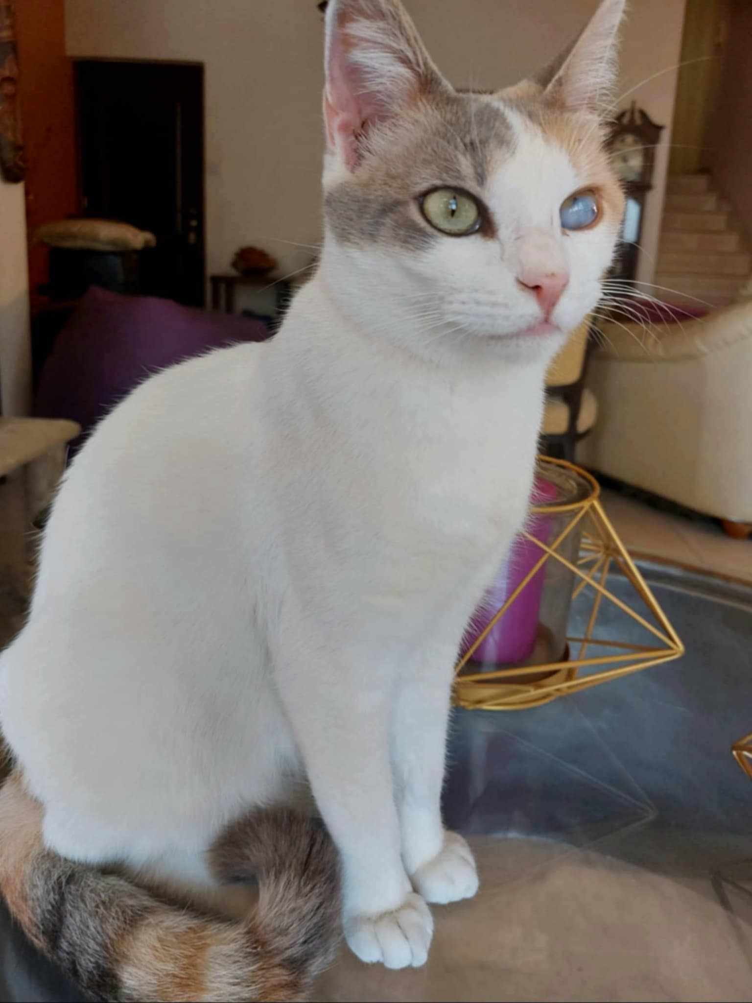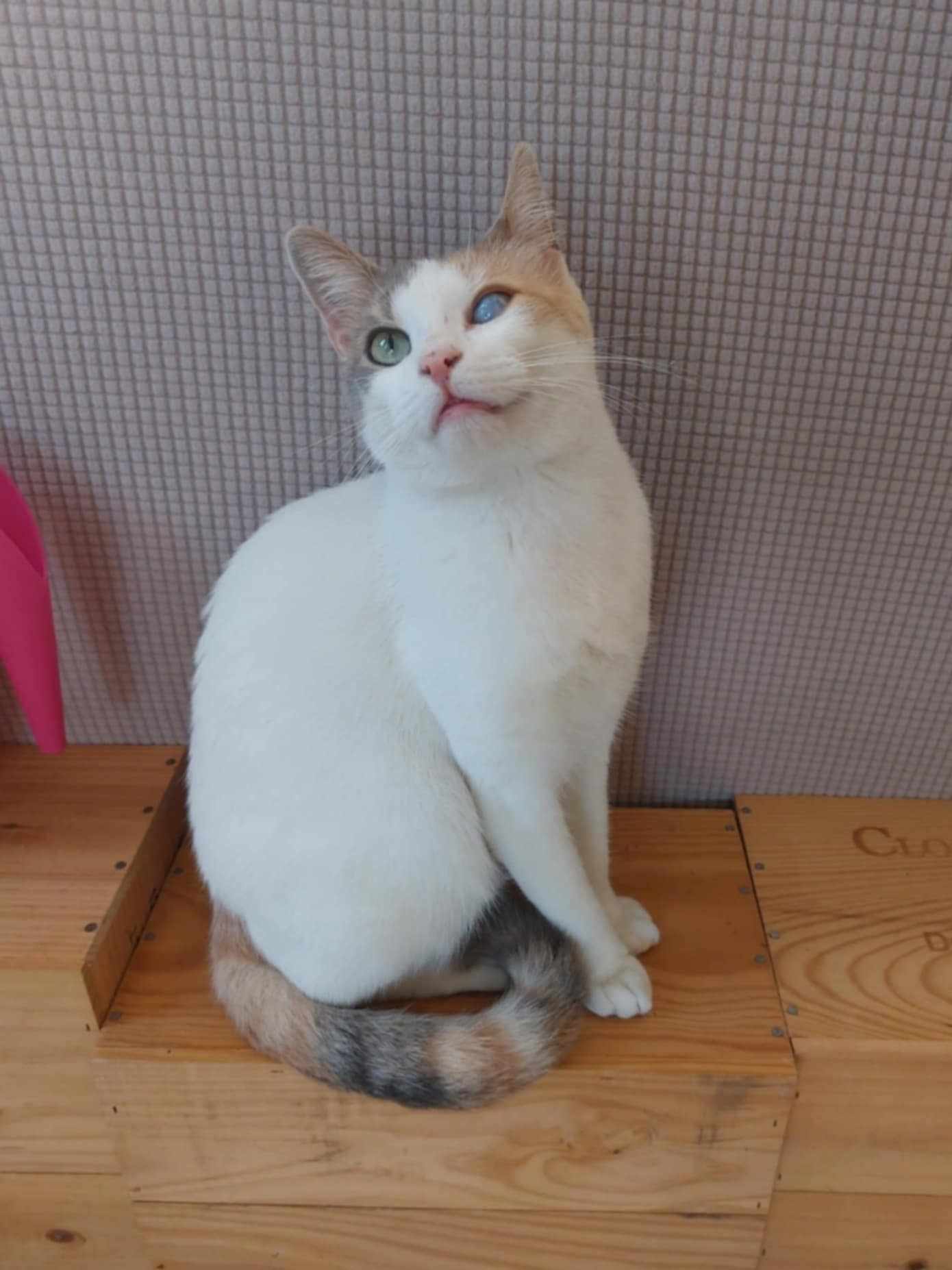 Karakter: Zeer speels en aanhankelijk. Houdt van knuffelen en geaaid worden, speelt graag met andere katten. Een speelmaatje is daarom een absolute must! Ze is op zoek naar haar gouden mandje en hoopt snel geadopteerd te worden.