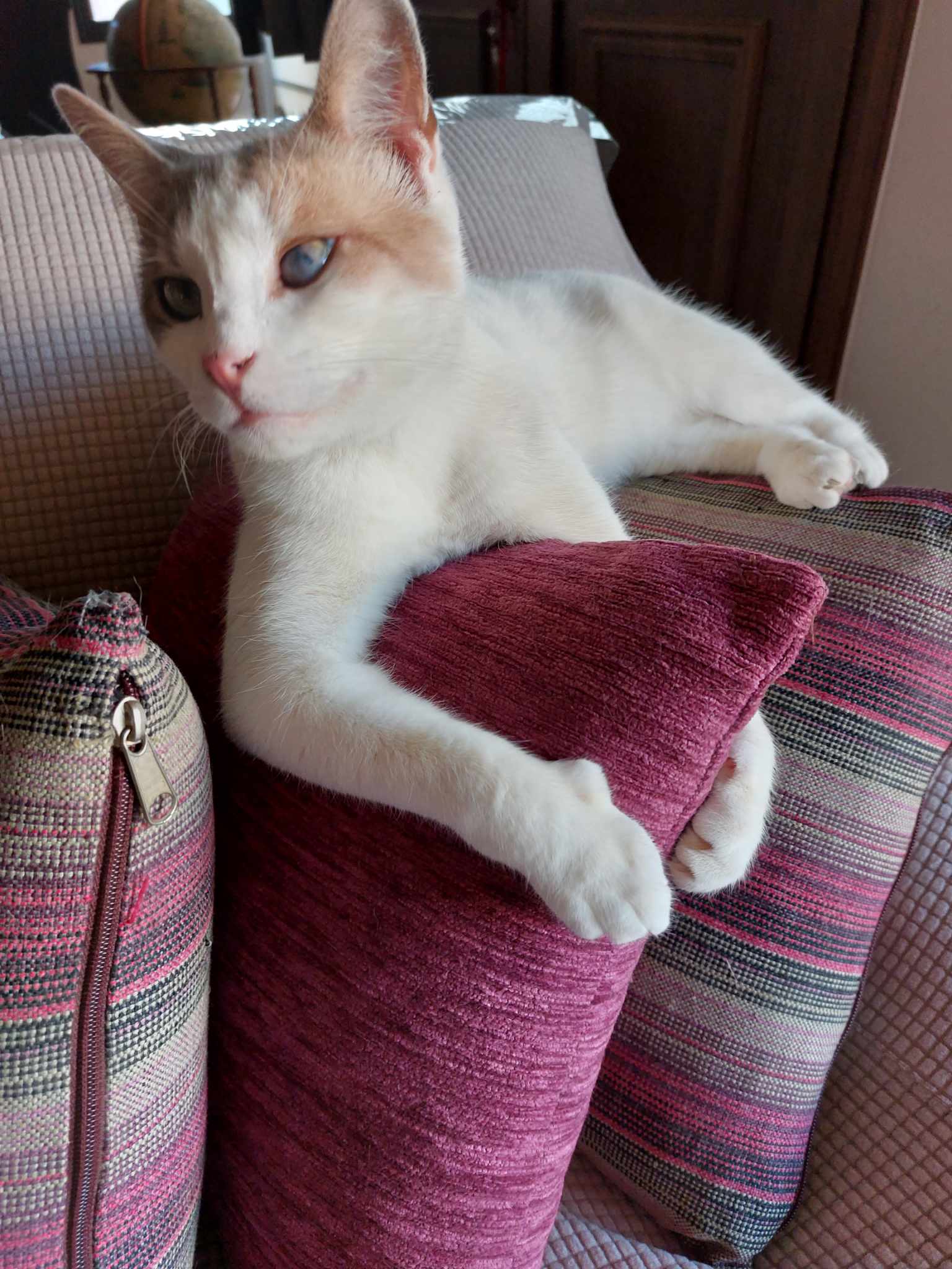 Karakter: Pickle is een zelfverzekerde, nieuwsgierige en speelse kater. Hij is niet bang voor kinderen, kleine honden of hoogtes. Met zijn prachtige lange rood-witte vacht — die nog verder zal groeien — is hij echt een opvallende verschijning. Hij ontdekt graag nieuwe dingen, speelt volop en zoekt een plekje achter het raam om als een echte koning over zijn rijk te waken.