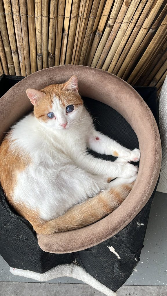 Gevonden: In een dakbeschutting samen met zijn moeder en vier zusjes. Gered door een vriendelijke dame, maar na vier maanden alsnog op straat beland. Vanaf november 2024 in een pension.