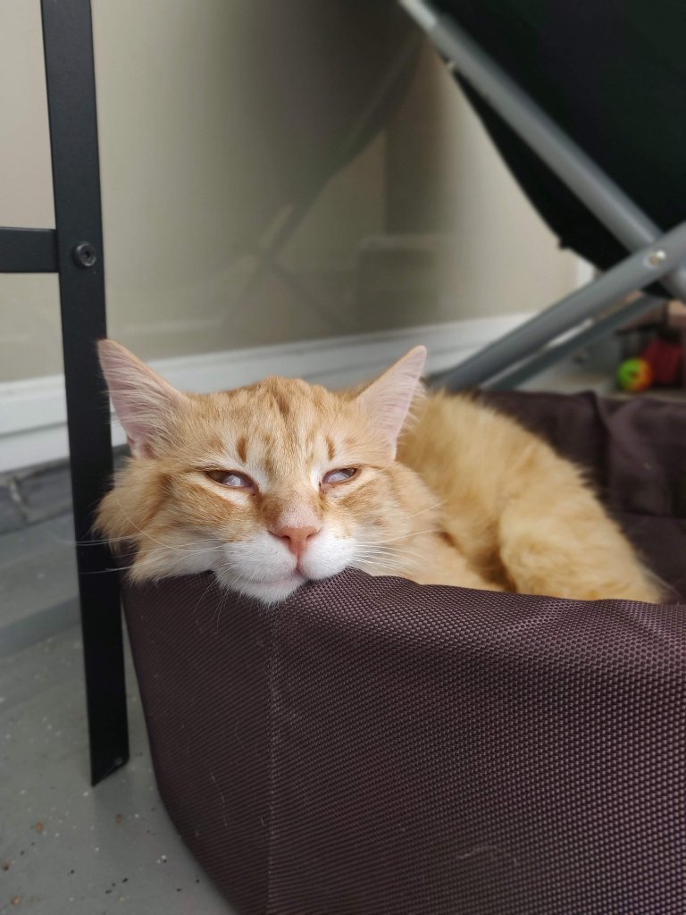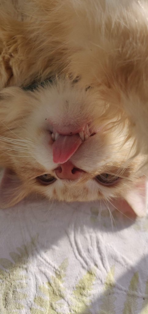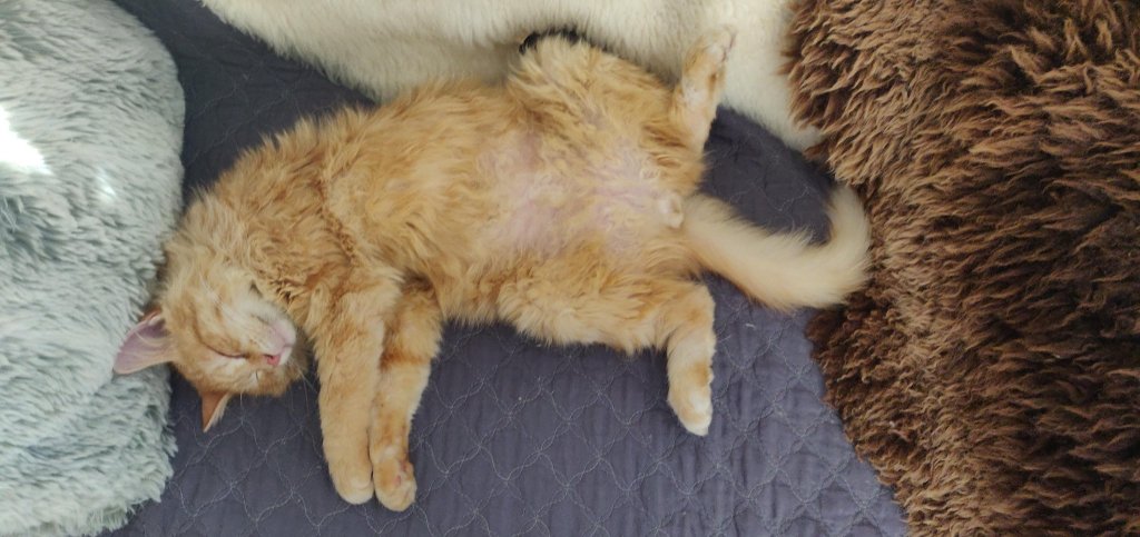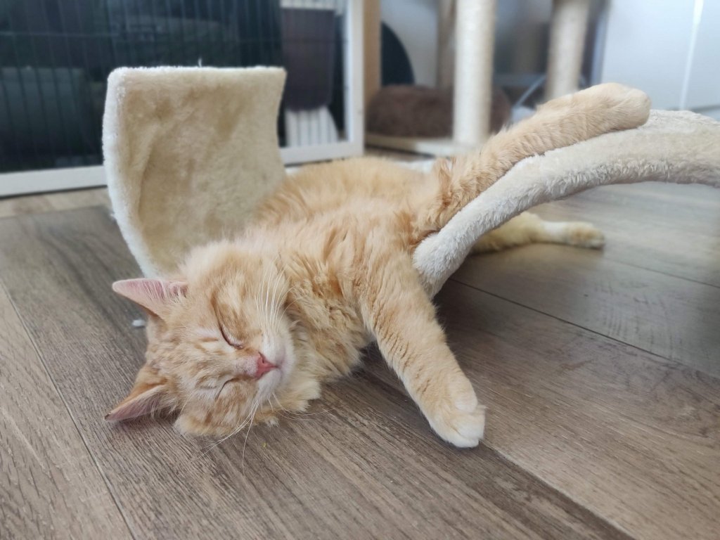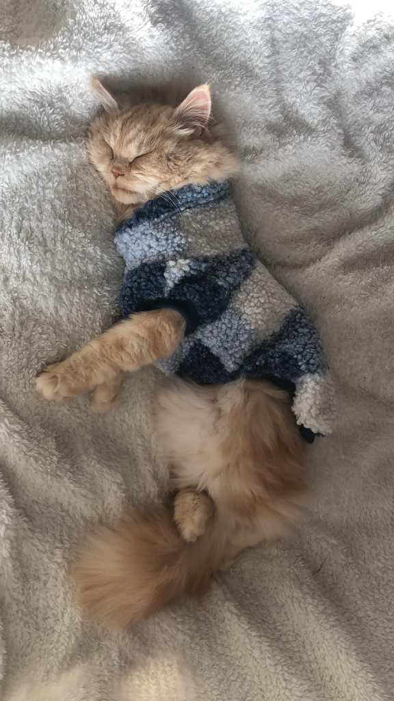 Toen Hummus bij ons kwam, droeg hij een zwaar (medisch) verleden met zich mee. Het vermoeden is dat hij als vok kater in Egypte is gebruikt. Hij had een dubbele graad 4 patella luxatie wat betekent dat zijn knietjeslos aan de verkeerde kant van de benen zaten. Slechts één nier werkte nog, en dat maar voor 40%. Zijn gebit was volledig verrot; elke tand deed pijn. De prognose was allesbehalve rooskleurig. Toch hebben we gekozen om hem te ontzien van zijn tanden om nog een korte, maar goede tijd te hebben.