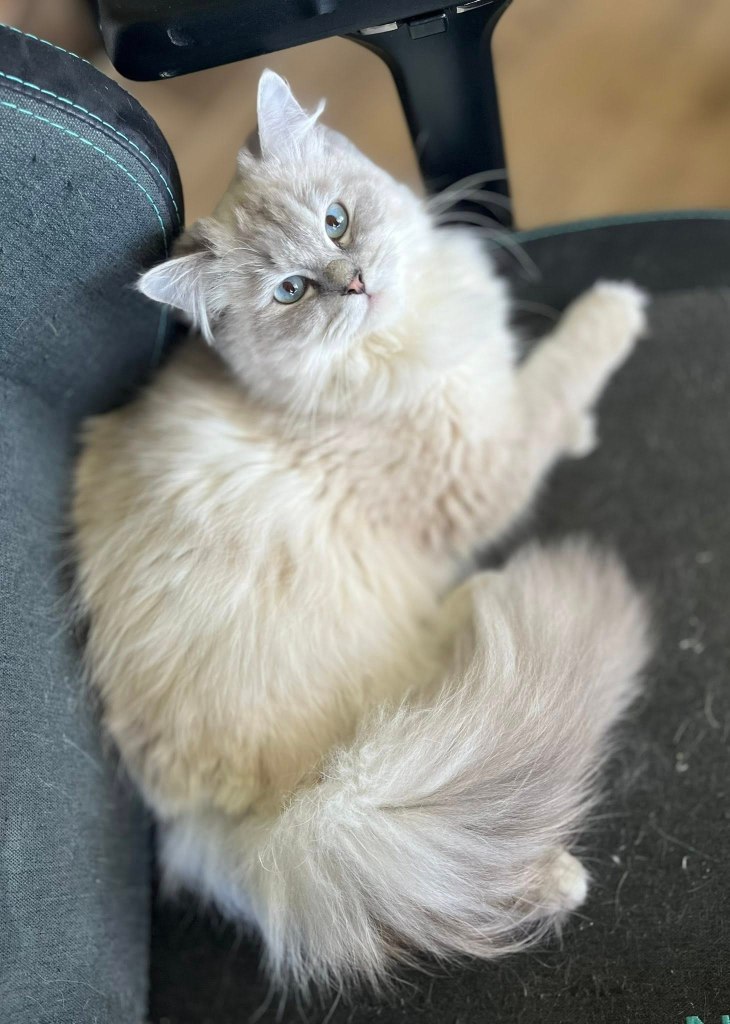 Karakter: Ze is pittig naar de andere katten, gek op water en erg picky met eten. Ze komt op schoot wanneer ze daar behoefte aan heeft. Oh, ze pest Soota soms.